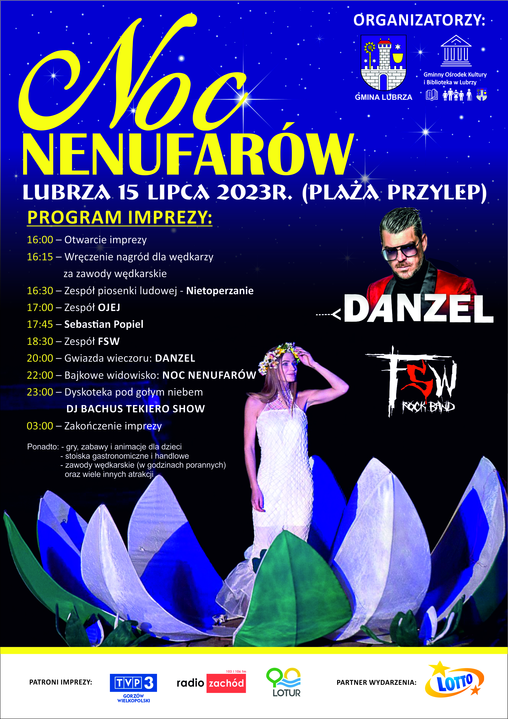 Przed Państwem plakat z programem, tegorocznej edycji imprezy pn.: "NOC NENUFARÓW"!
