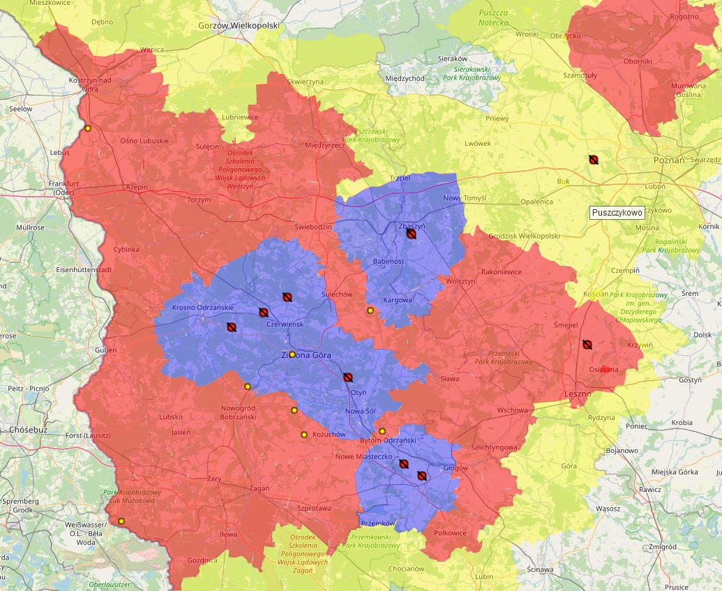 - gminy: Skąpe, Szczaniec i Zbąszynek