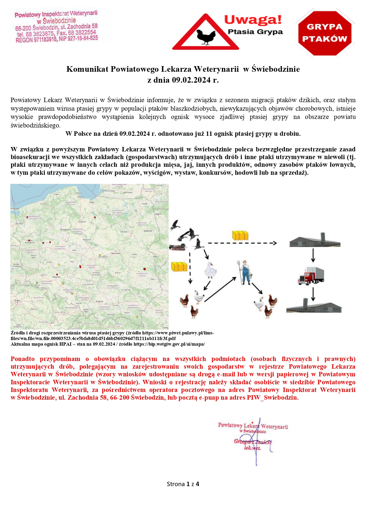 Komunikat Powiatowego Lekarza Weterynarii w Świebodzinie z dnia 09.02.2024 r.