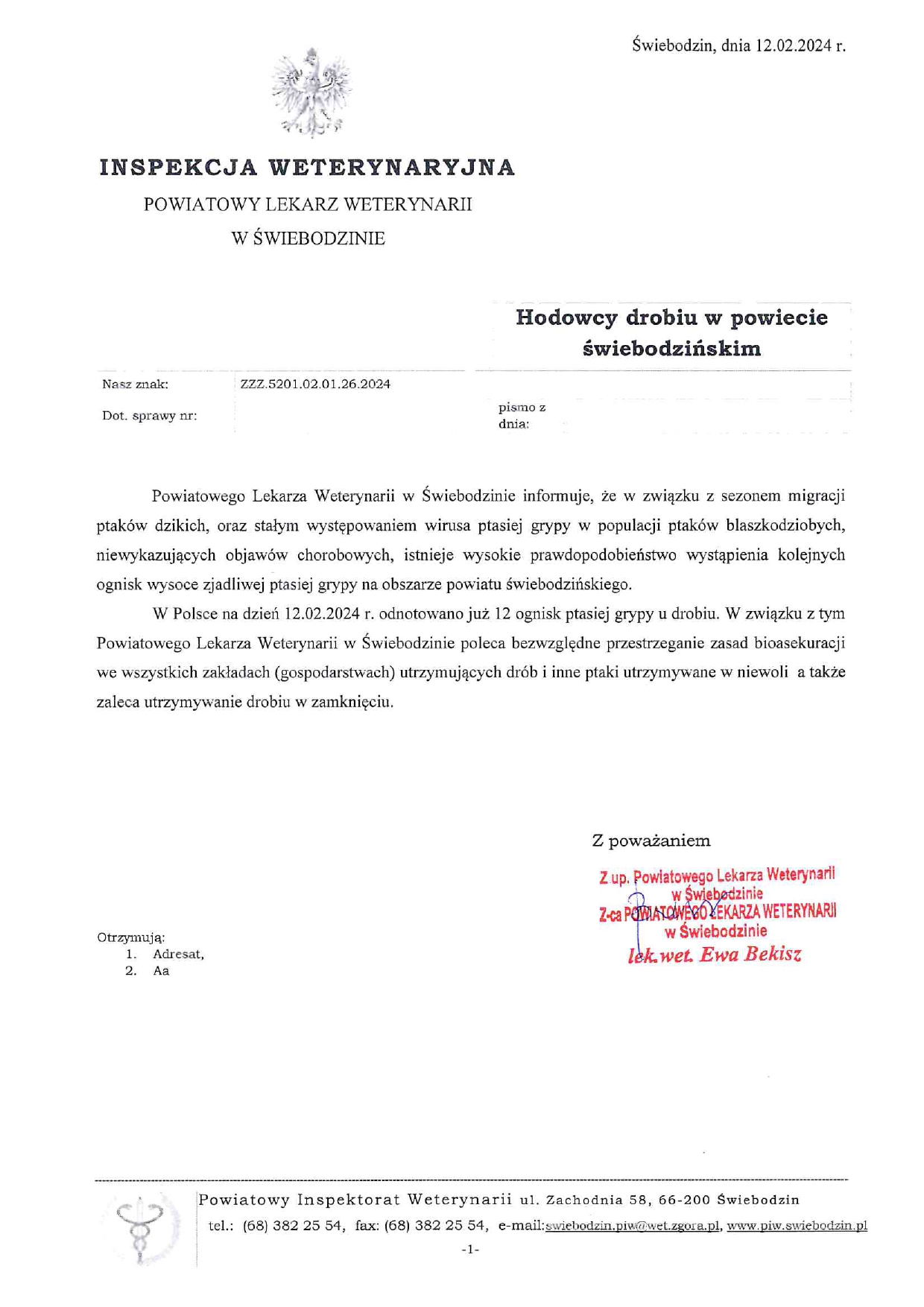 INSPEKCJA WETERYNARYJNA Powiatowy Lekarz Weterynarii w Świebodzinie Hodowcy drobiu w powiecie świebodzińskim